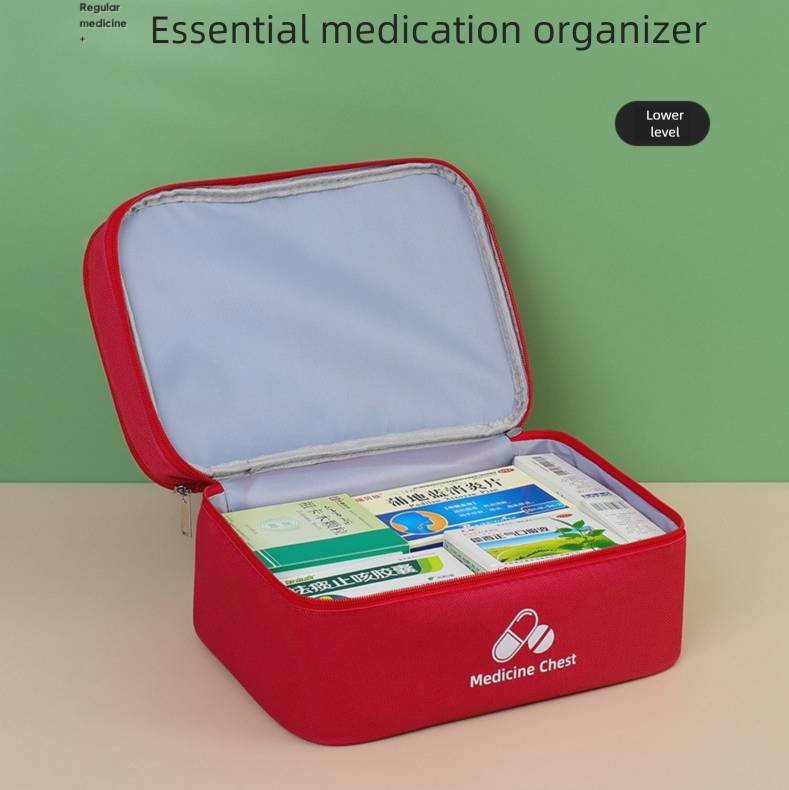Stay prepared with this medium-sized medicine organizer, featuring a dual-layer design that offers ample space for essential health supplies. Ideal for home use or travel, it keeps medications, first aid items, and personal care products neatly arranged and easily accessible—without including any actual medicines.