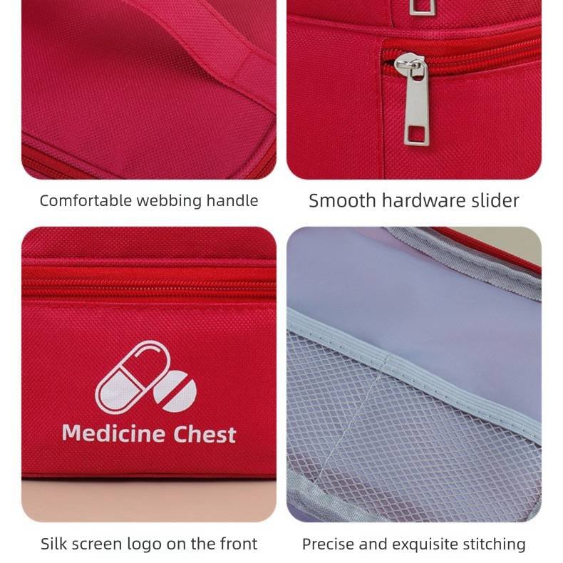 - Upper layer contains multiple mesh pockets for bandages, ointments, thermometers, or small medical tools