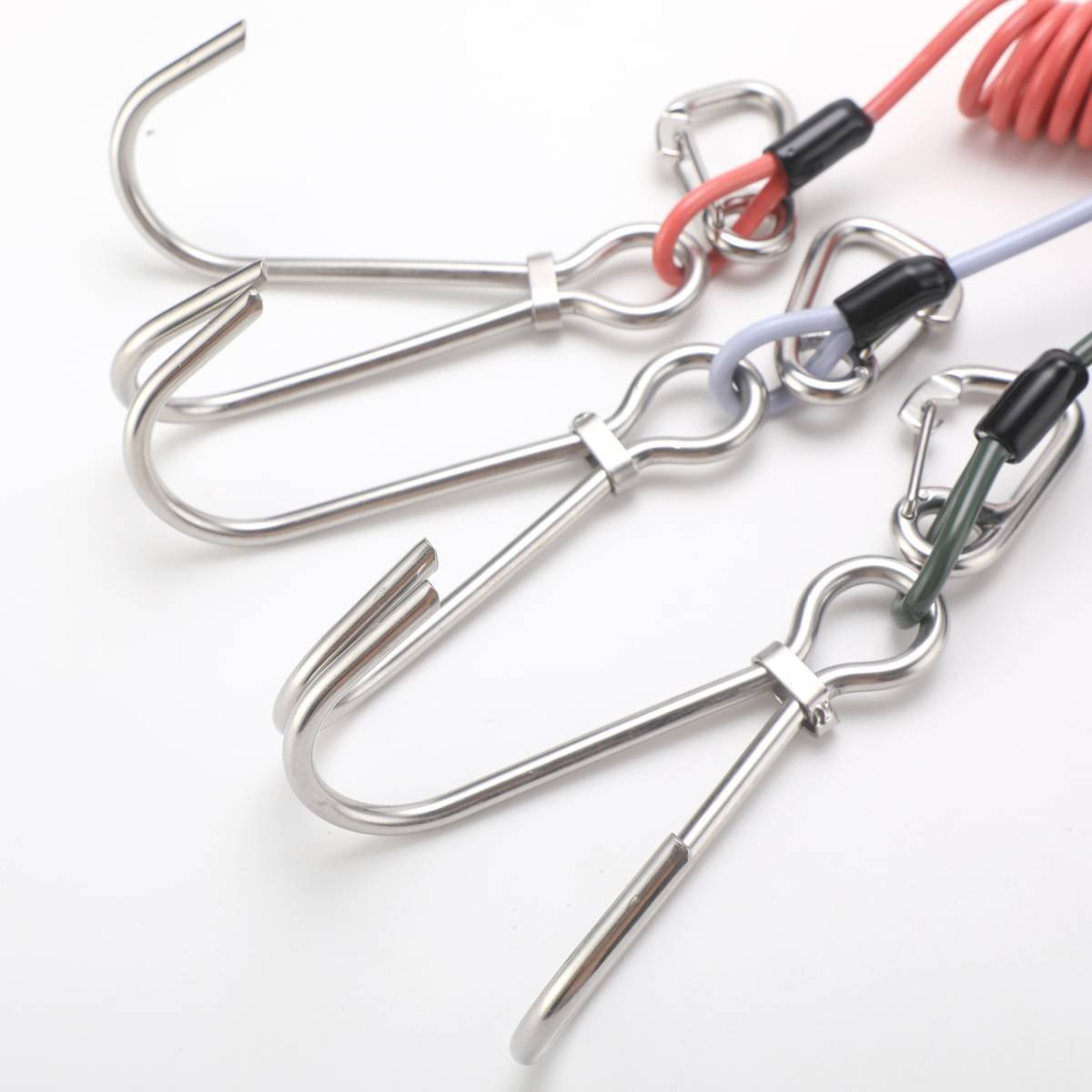 - Durable Coiled Lanyard with Steel Core: Each hook features a flexible coiled lanyard (spring diameter 5mm) containing an internal 316 stainless steel wire for maximum strength and reliability. It extends from approximately 8cm up to 160cm (1.6 meters), providing ample reach.