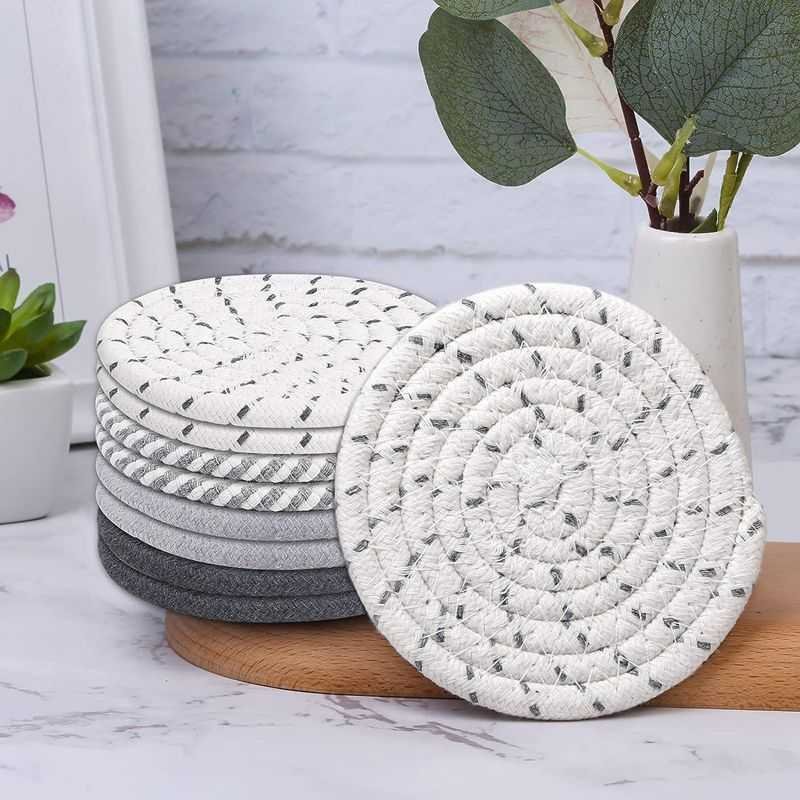 - Premium Woven Cotton: Crafted from high-quality, tightly woven cotton thread, these coasters offer a soft yet durable surface that is gentle on your furniture and drinkware.