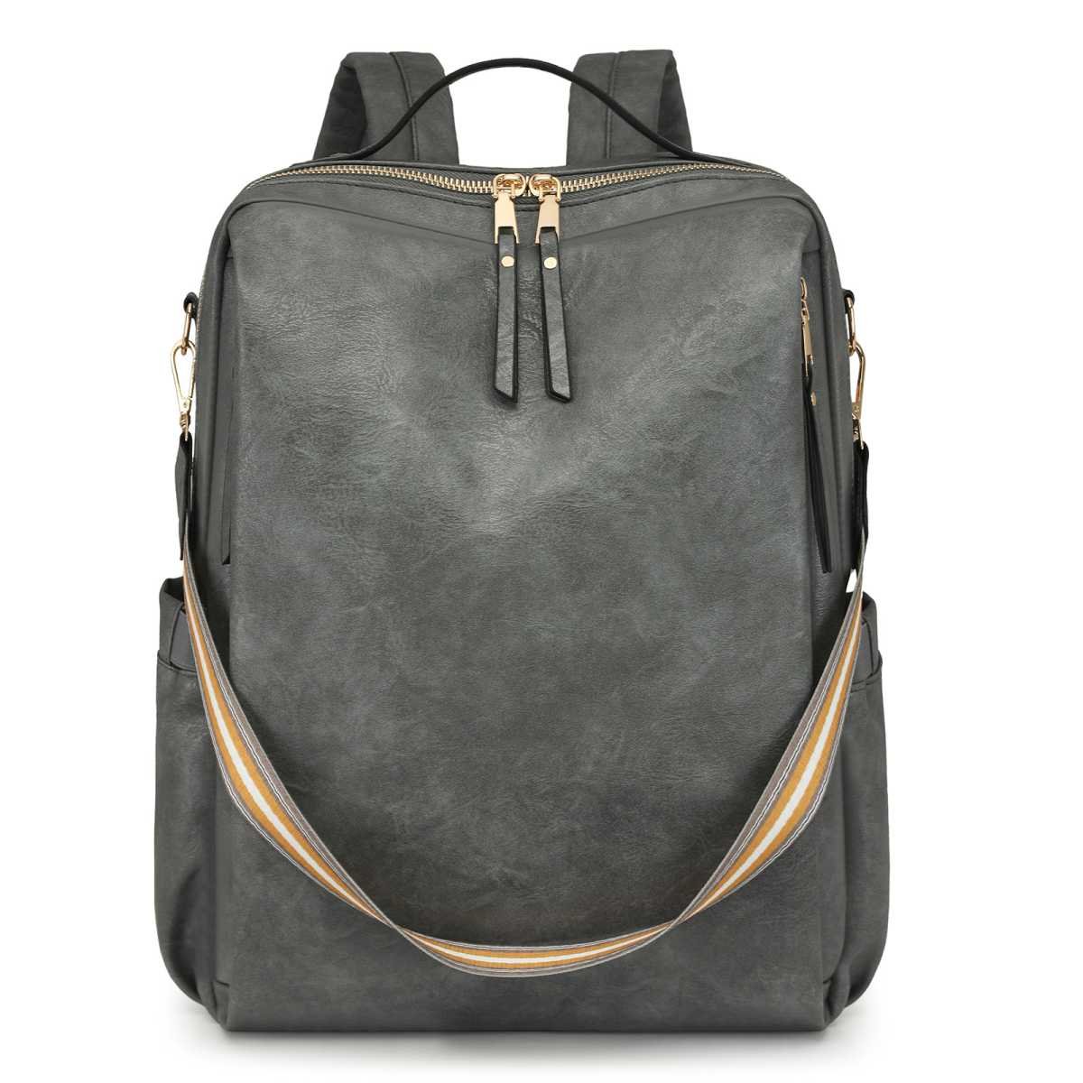 Grey Women’s Vintage PU Leather Anti-Theft Backpack – Convertible Shoulder Bag & Laptop Rucksack for Travel & Daily Use