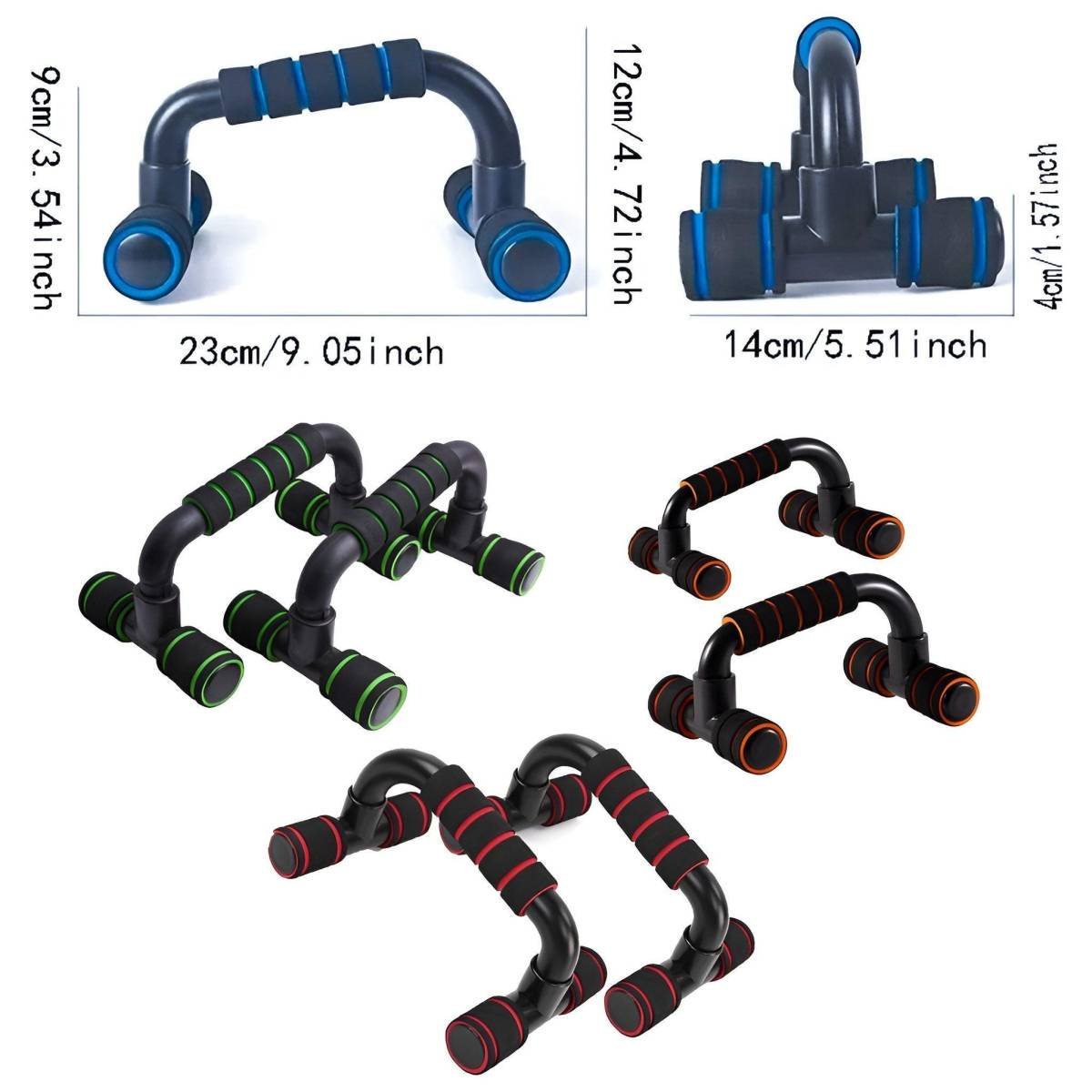 Enhance your upper body workouts with these I-shaped push-up bars, designed to improve chest, arm, shoulder, and core training. Featuring an ergonomic structure and anti-slip foam handles, they provide stability and comfort for every session. Made from durable engineering plastic, they support intense workouts while being lightweight and portable for home or travel fitness.