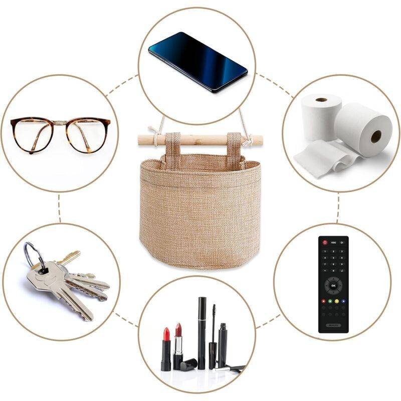 - [Premium Material] Made of quality fabric, durable, washable and wrinkle-free, safe and suitable for door, closet, wall, bathroom, etc. [Large Capacity] Each storage container measures 18 x 14 x 9 cm. It can hold all kinds of small items, such as glasses, jewelry, keys, small paper notepads, pens, etc. [Multifunctional and Foldable] Foldable and washable, the storage pockets are very cute and gender-neutral, and look stylish in a room. There is a wooden stick used to connect the bag, very sturdy and has good load-bearing capacity. [Package Included] 3-pack storage bags, easy to install and use. Suitable for home, closets, dormitories, attics, shelves, basements, bedrooms, etc.
