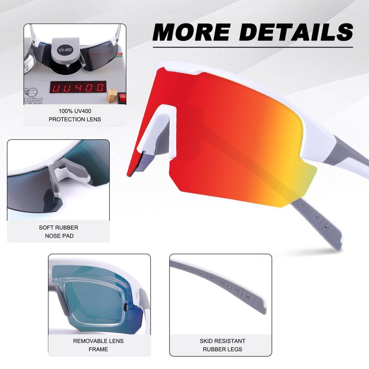 High-End Polarized Sports Sunglasses for Men Women – UV400 Protection, Anti-Fog, Lightweight TR90 Frame, Removable Lens, Ideal for Cycling, Running, Fishing, Golf (White & Red)