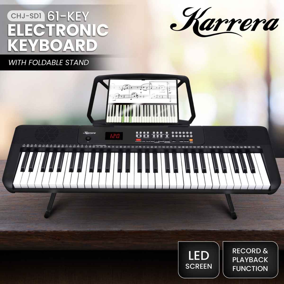 Karrera 61-Key Electronic Piano Keyboard with LED and Folding Stand in Black CHJ-SD1