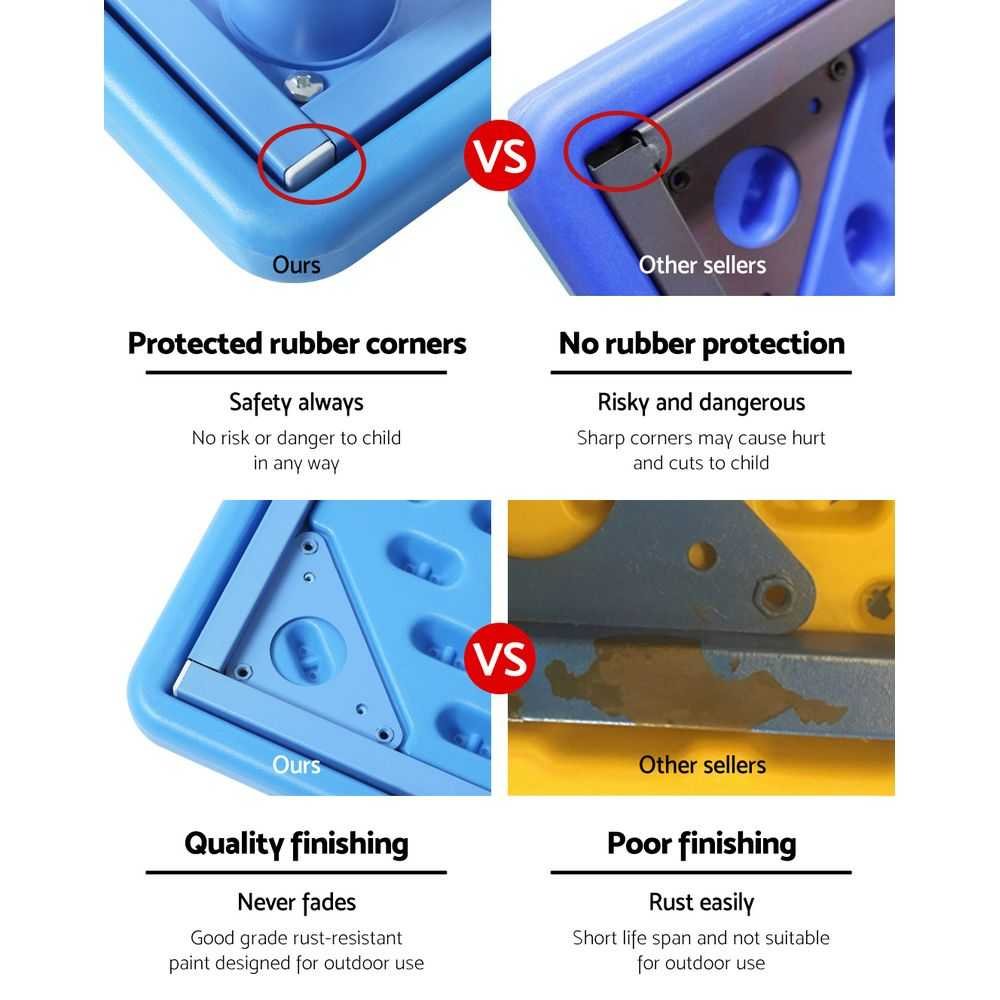 Made from HDPE plastic, the Set is designed to be durable and easy to maintain. In fact, the Table uses powder coated steel for its legs and under-table frame so that it can stand up to robust use. The Table actually has a maximum weight capacity of 100kg while the chairs can each carry up to 50kg maximum. That adds up to some hefty allowances for even the most weight-challenged kids. Or even some crazy jumps on the Table as kids are inclined to do from time to time.