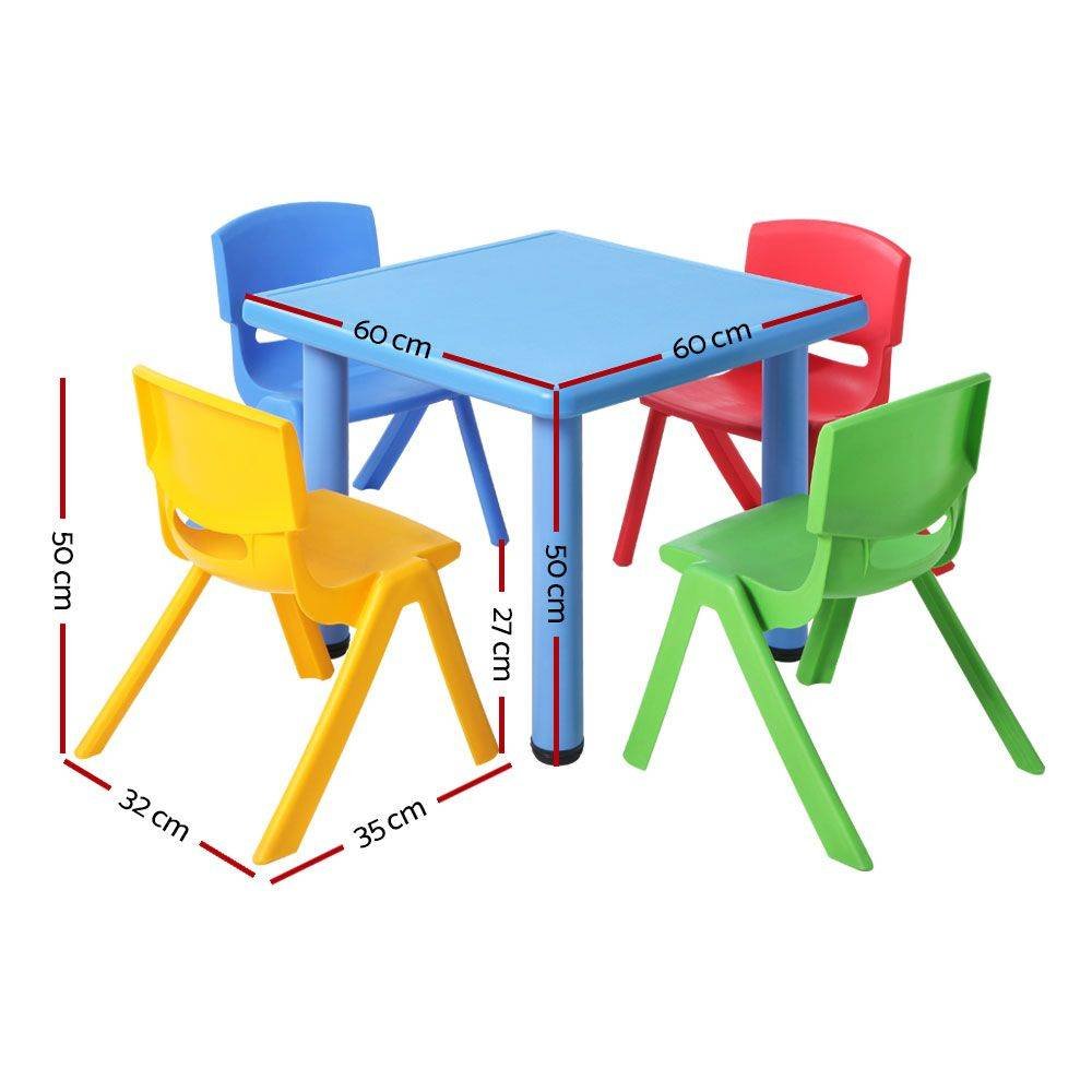 Keezi 5PCS Kids Table and Chairs Set Children Study Desk Furniture Plastic 4 Chairs
