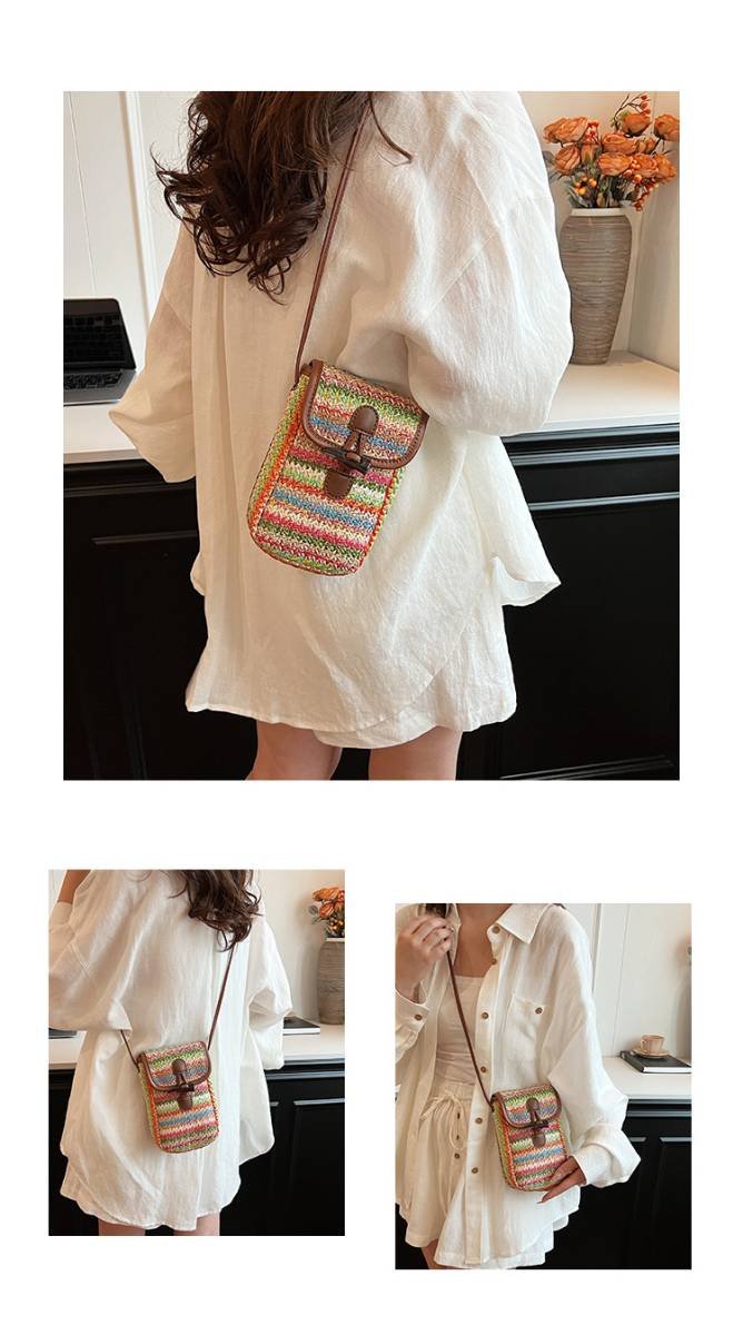 Embrace a touch of bohemian flair with our beautifully crafted Woven Straw Crossbody Bag. Featuring vibrant rainbow stripes and a charming toggle closure, this mini bag is perfect for carrying your essentials in style. Ideal for sunny days, casual outings, or when you just need your phone, keys, and cards handy.