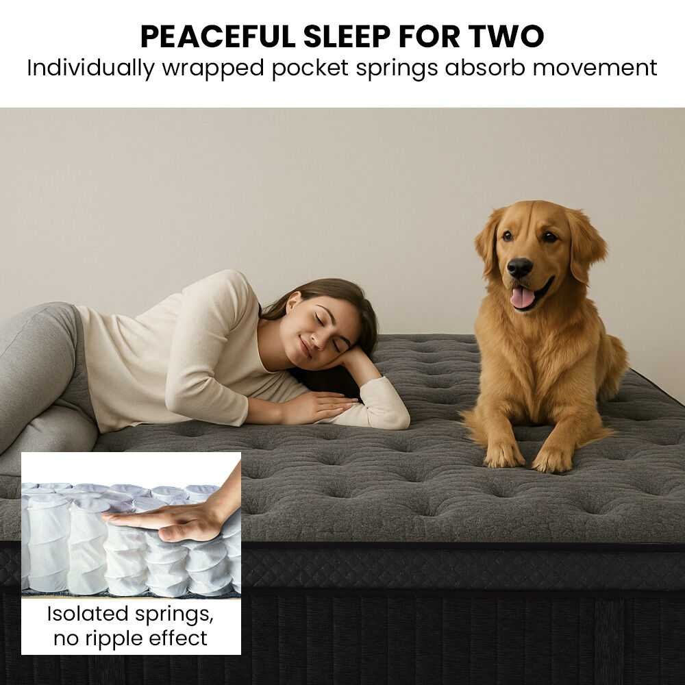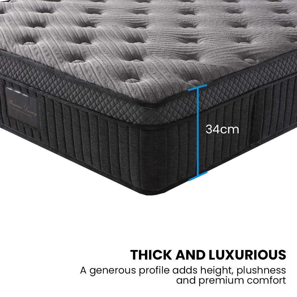 KINGSTON SLUMBER Premium Luxury 34cm Queen Mattress, Medium-Firm, Natural Latex Layer, Euro Top, 7-Zone Pocket Spring