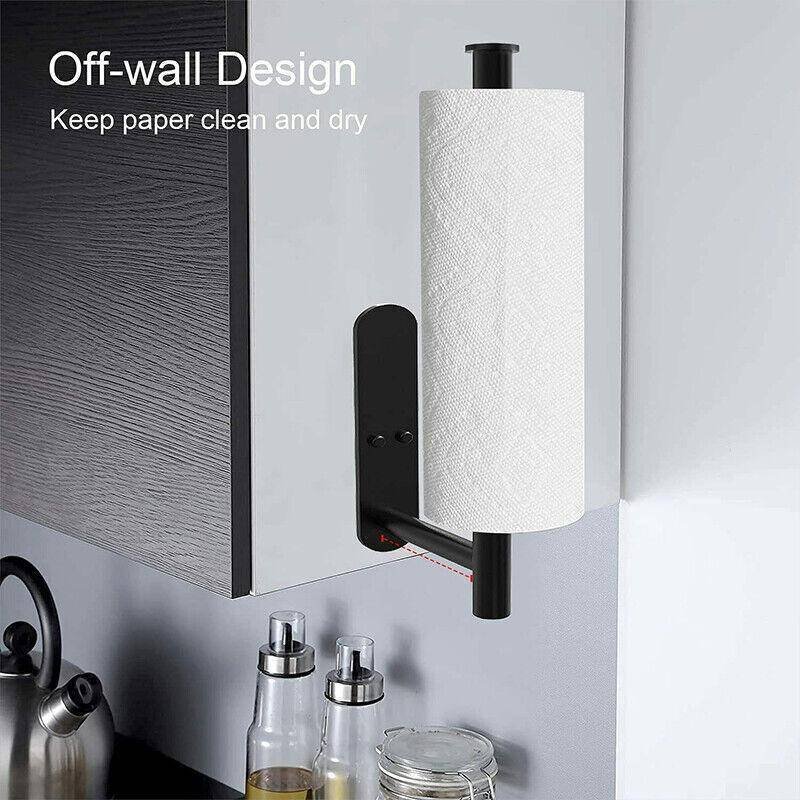 Kitchen Hanger Paper Roll Cabinet Towel Holder Organizer Rack Shelf Wall Adhesive – Black