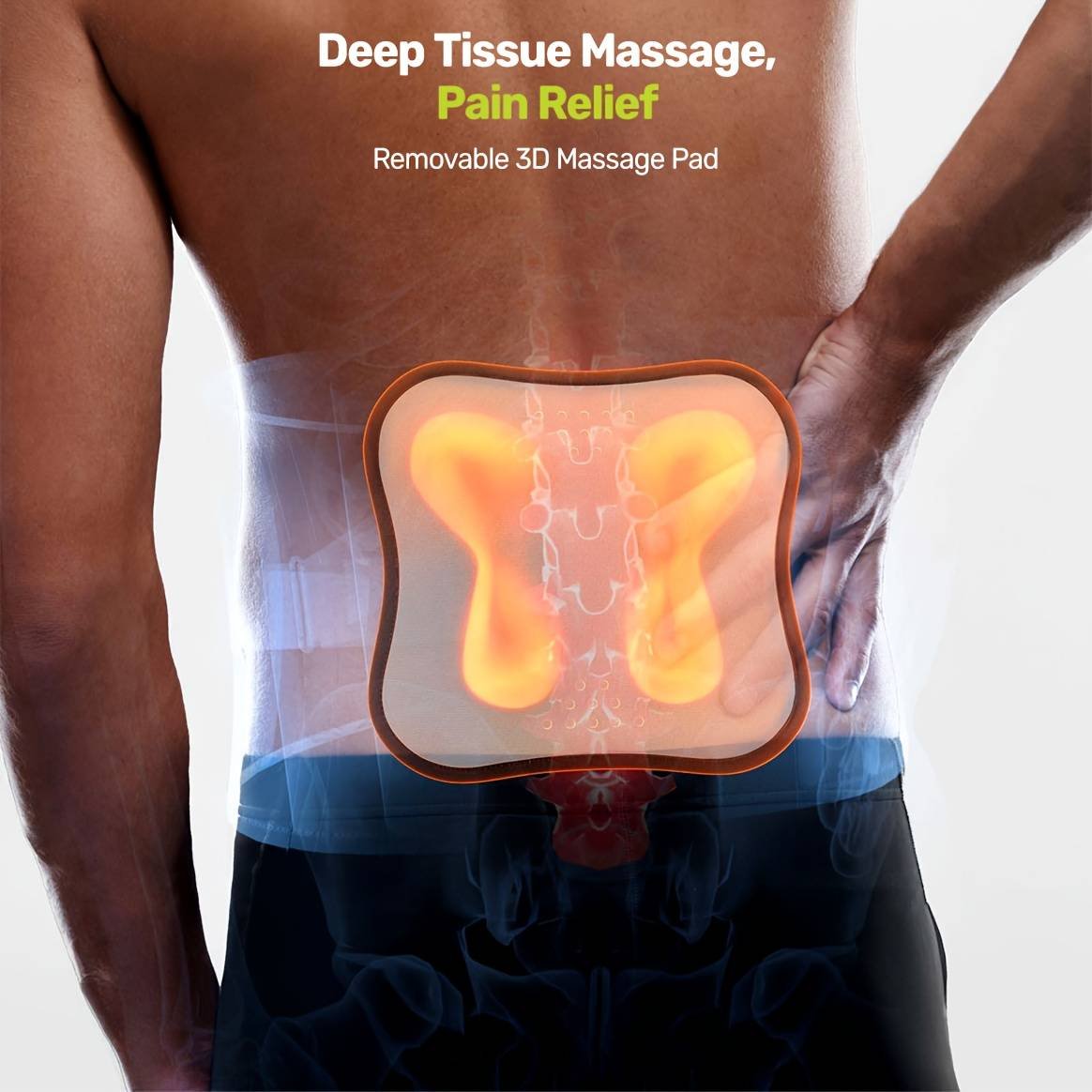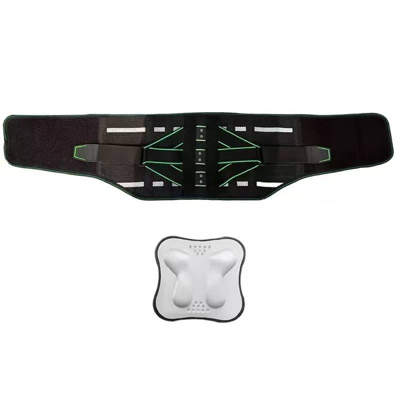 Lumbar Support Belt, featuring 8X Enhanced Lumbar Support, designed with a 3D massage pad, unisex back support strap, breathable and adjustable shoulder straps, available in green.(Size XL)