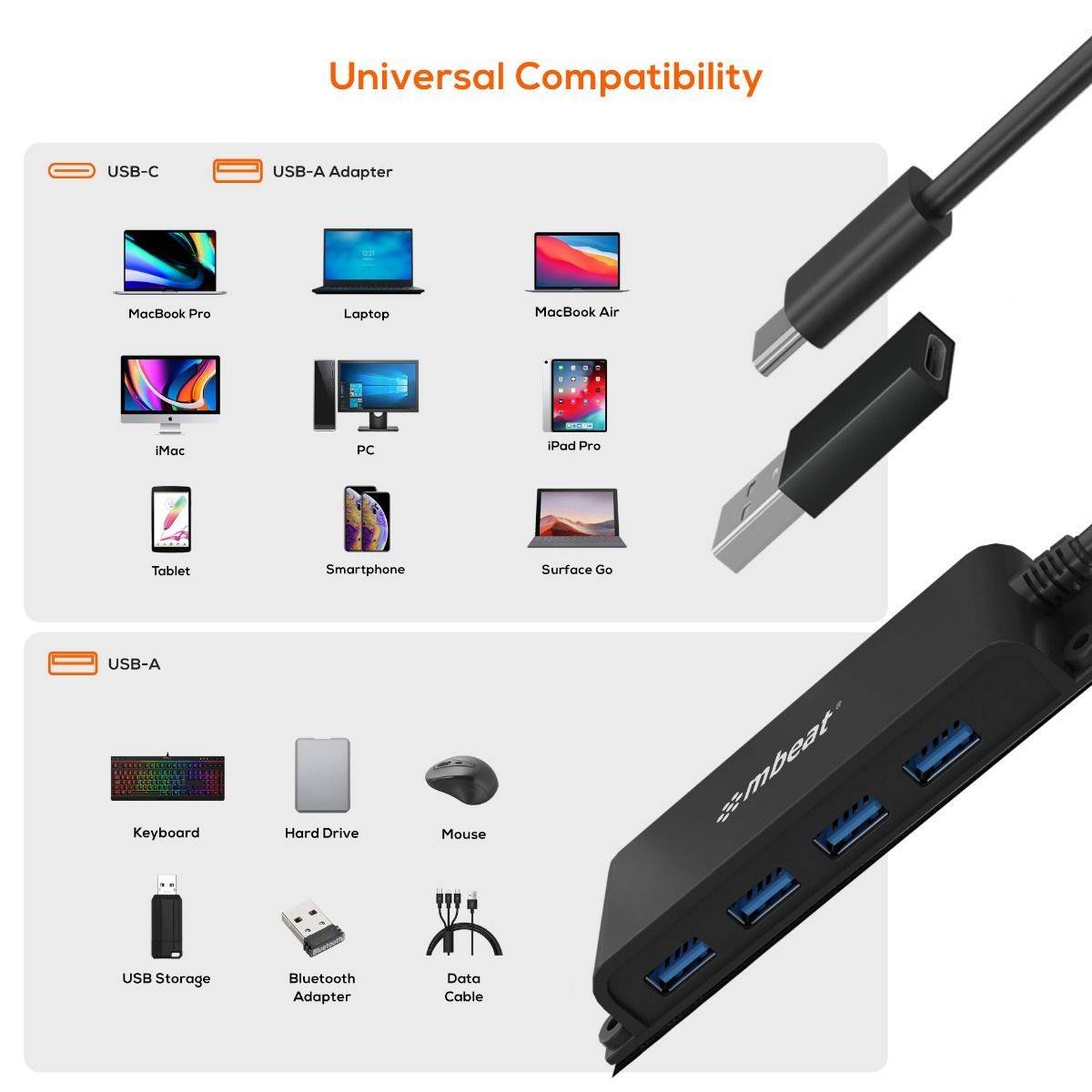 - 4-Port USB-C to USB 3.0 high-speed data hub for instant port expansion.