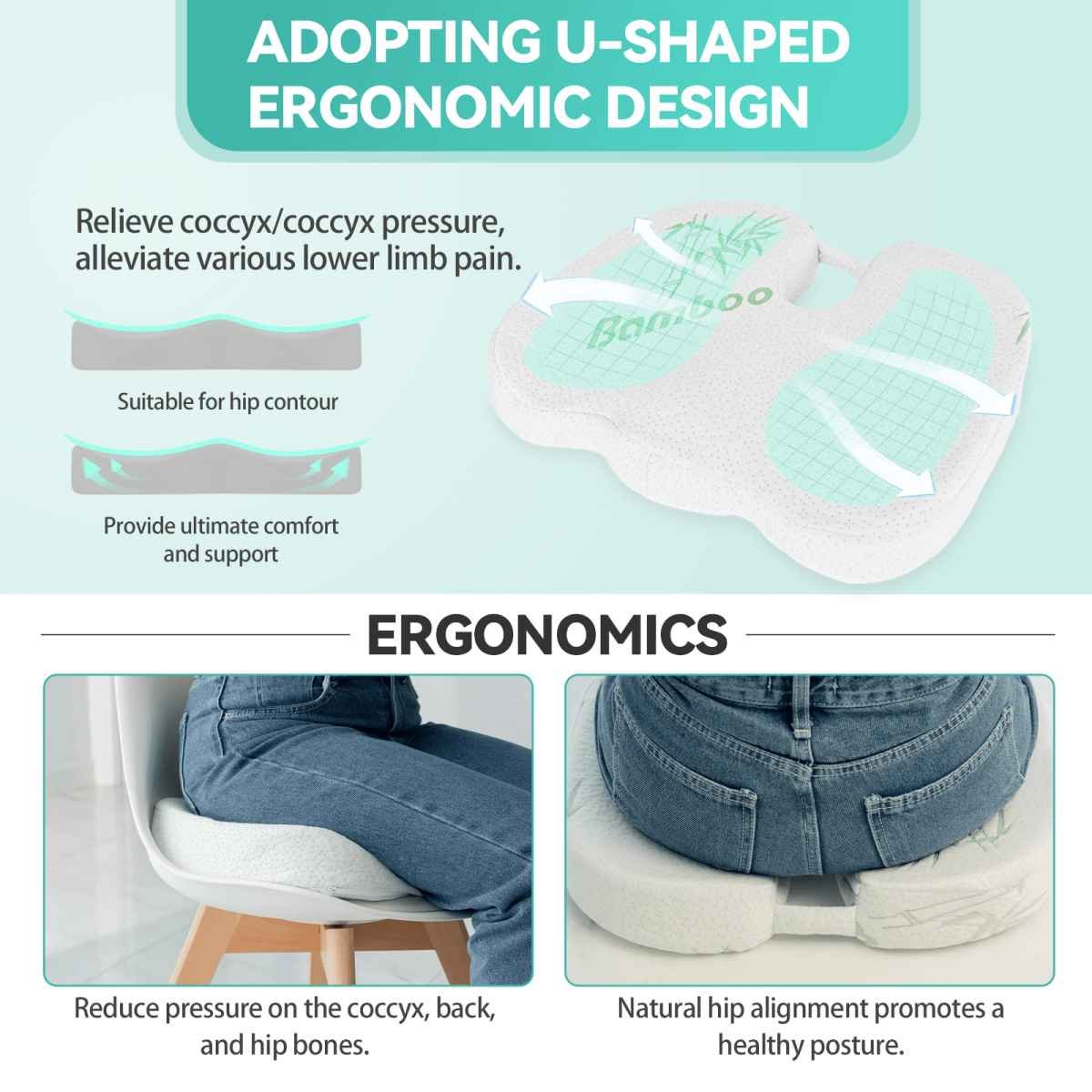 - Supports tailbone and relieves pressure.