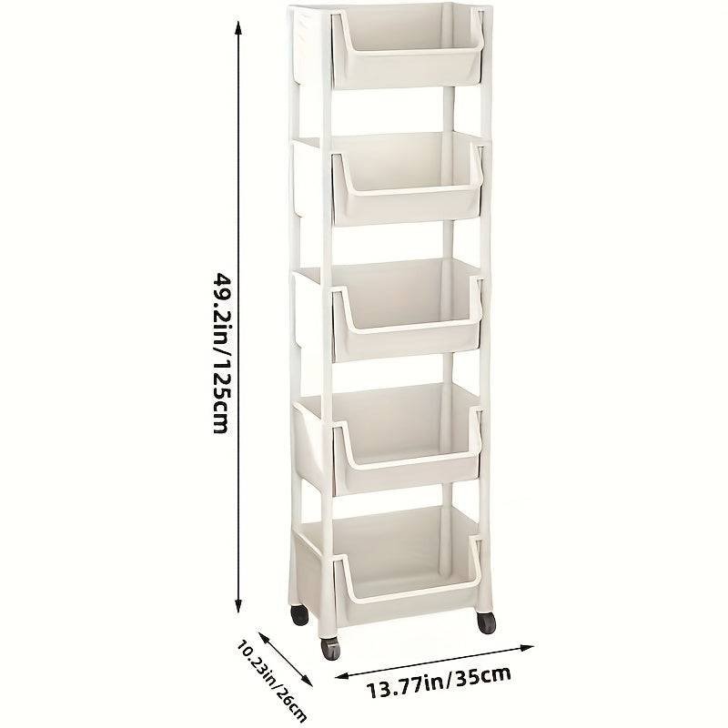 Spacious 5-tier layout provides ample storage for books, spices, or office supplies.