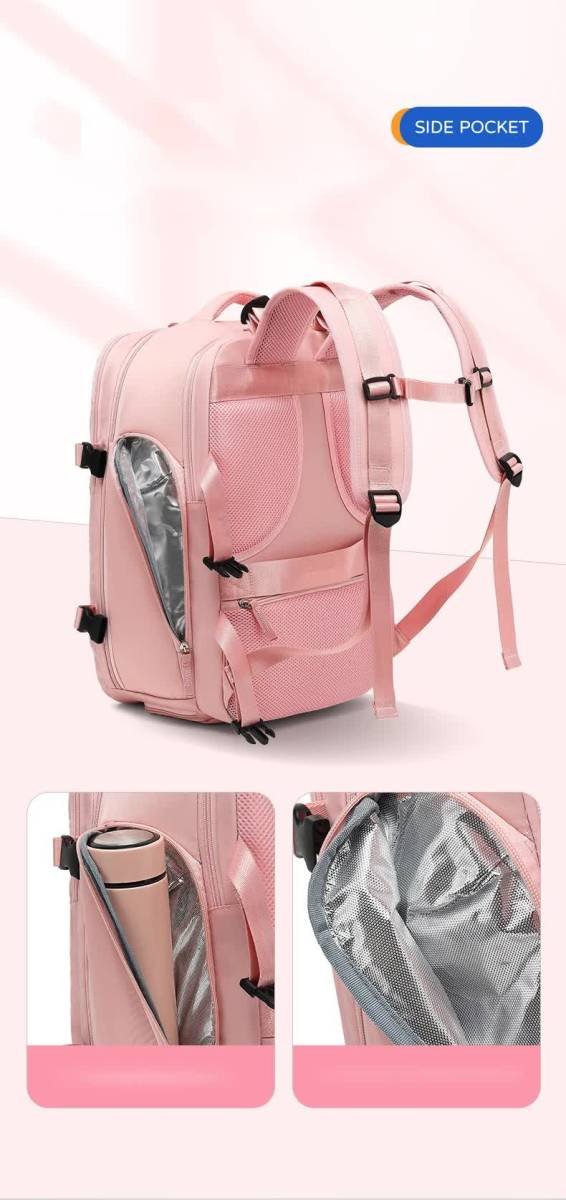 Multi-Compartment Travel Backpack with Shoe Storage – This versatile gray backpack is perfect for gym sessions, travel, or daily use. It features a unique independent shoe compartment, keeping your footwear separate from other belongings, along with wet-dry separation pockets to store damp clothes or toiletries without worrying about leaks. Designed with comfort in mind, the padded shoulder straps provide excellent support, making it ideal for long wear. A perfect combination of practicality and style for those always on the go.