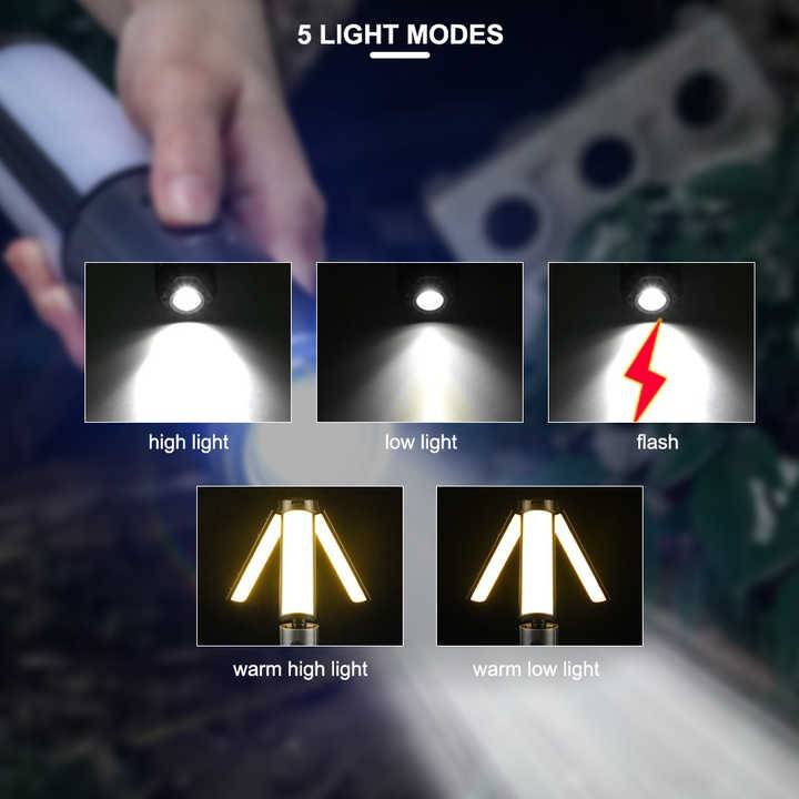 - Detachable Lantern: Can be used as a handheld flashlight or stationary lamp, offering multiple modes of use.