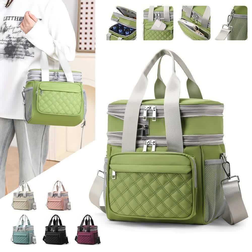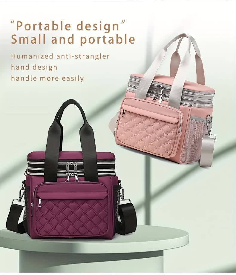 PINK Large Capacity Travel Bag / Lunch Bag. Expandable 5cm, Multi-Compartment Storage, Hand/Shoulder Carry, Multi-Color Portable for Trips
