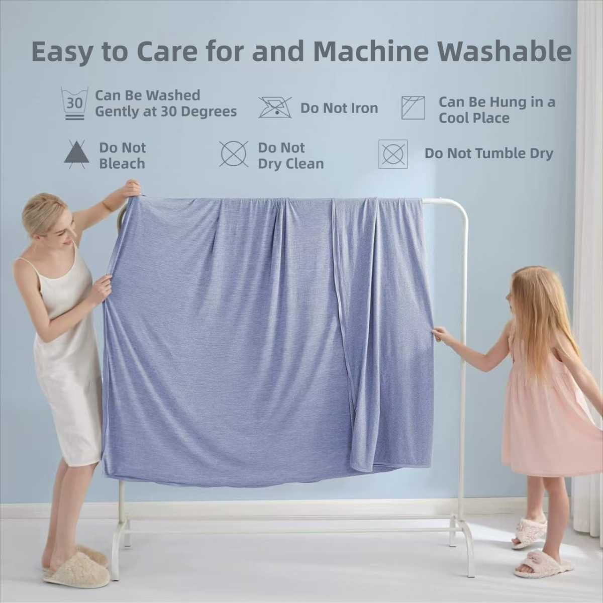 Enjoy exceptional comfort year-round with this versatile, lightweight cooling blanket. Made from soft, breathable polyester fiber, this blanket offers a cool sensation to regulate body temperature for hot sleepers during summer, while its lightweight design provides comfortable coverage for use in any season. Its large size is perfect for Queen beds or as a substantial sofa throw.