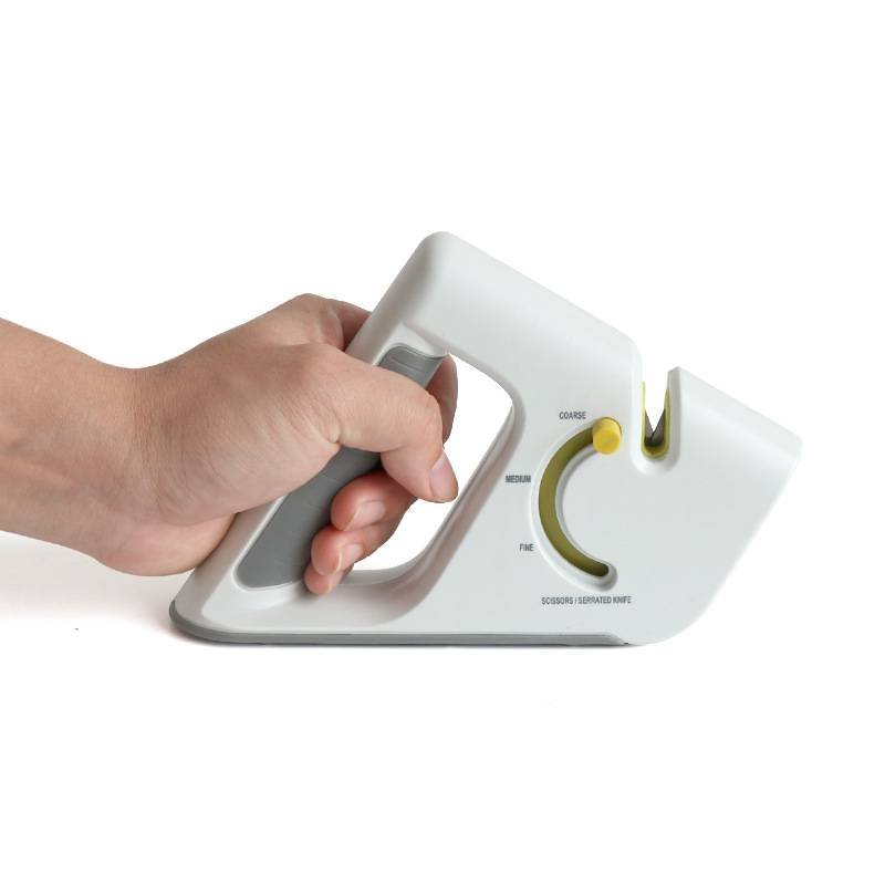 Hold the sharpener firmly on a stable surface while using. Keep fingers away from the sharpening slots to avoid injury. Clean the sharpener with a dry cloth after use and store in a dry place. Not suitable for ceramic blades.