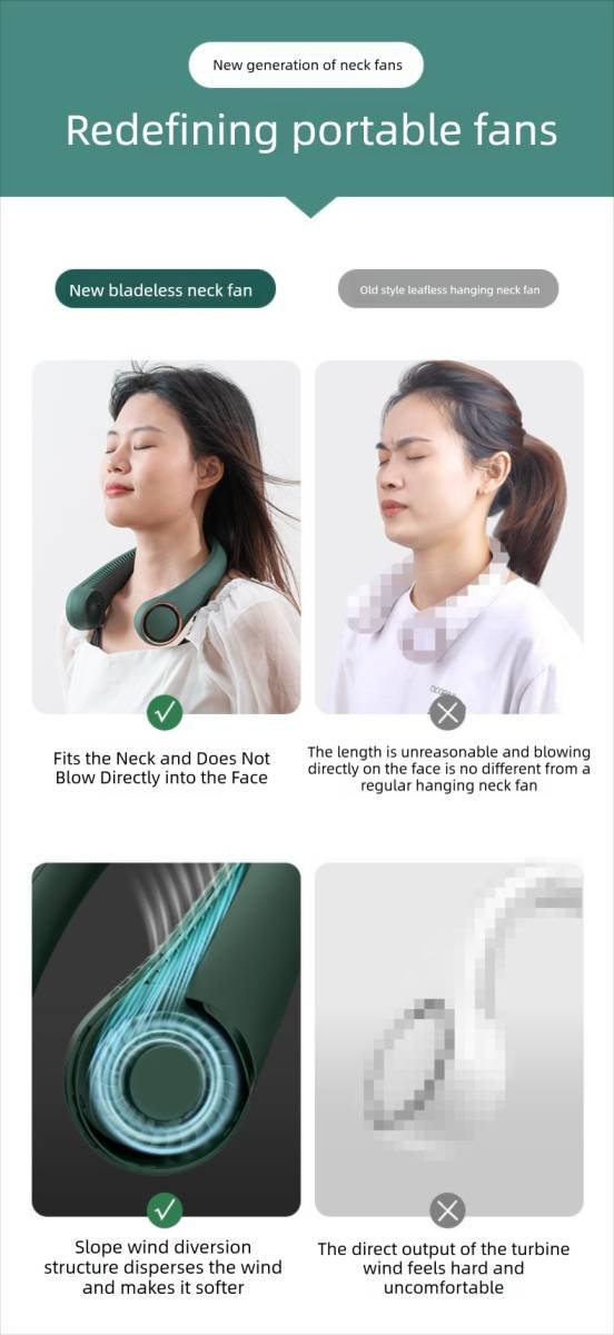 - 360-Degree Surround Airflow: The innovative ramp air guide system breaks up the wind to mimic a natural breeze, delivering air gently around your neck and face rather than blowing harshly on a single spot.