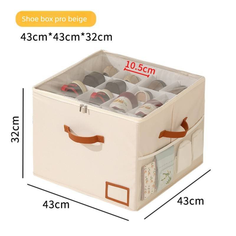 Premium Heavy Duty Shoe Storage Box 16 Grids Beige 43cm Cube Foldable Fabric Wardrobe Organiser with Label Holder and Side Pockets