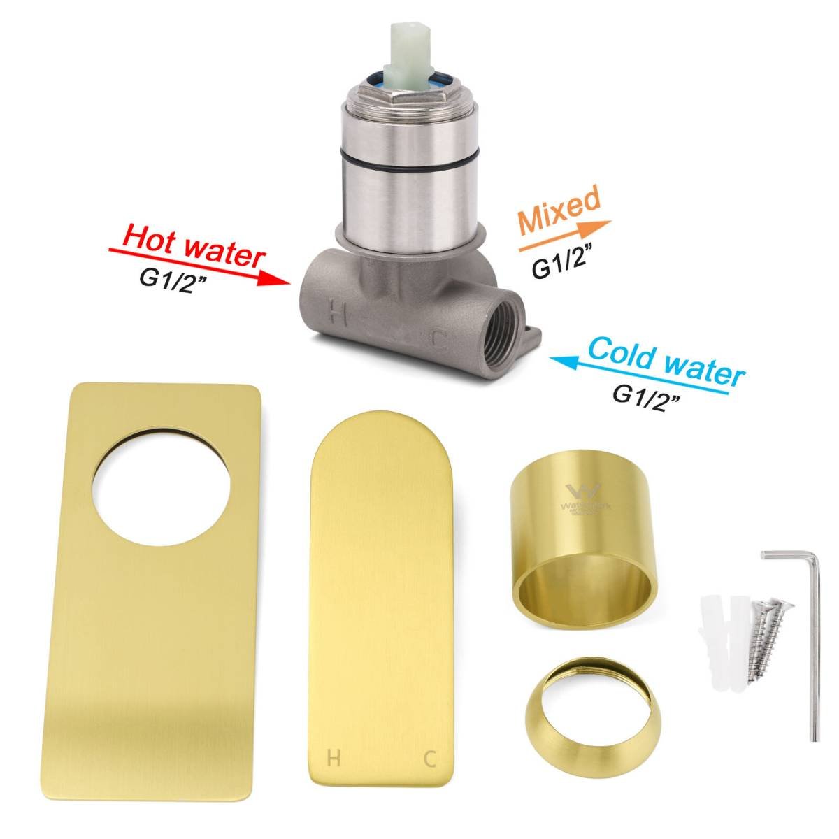 Rectangle Brushed Gold Shower Mixer Hot Cold Tapware Ceramic Cartridge Component