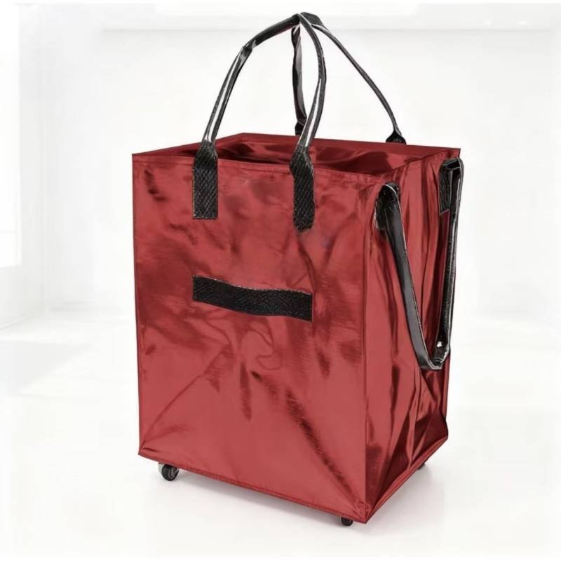 Red Portable Folding Shopping Trolley Bag(50x40x30CM) – Durable Woven Fabric, Reusable Grocery Bag with Wheels for Effortless Travel