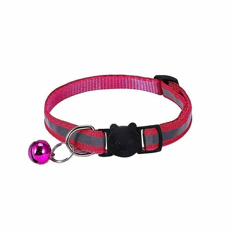 Reflective Cat Collar with Breakaway Buckle and Bell Adjustable for Small Pet Use – Rose Red