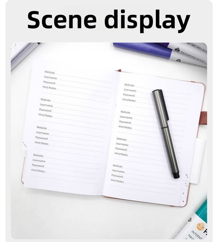 - Alphabetical Tabs: Features a step-cut A-Z tab system, allowing you to quickly navigate and locate the specific password you need without flipping through endless pages.