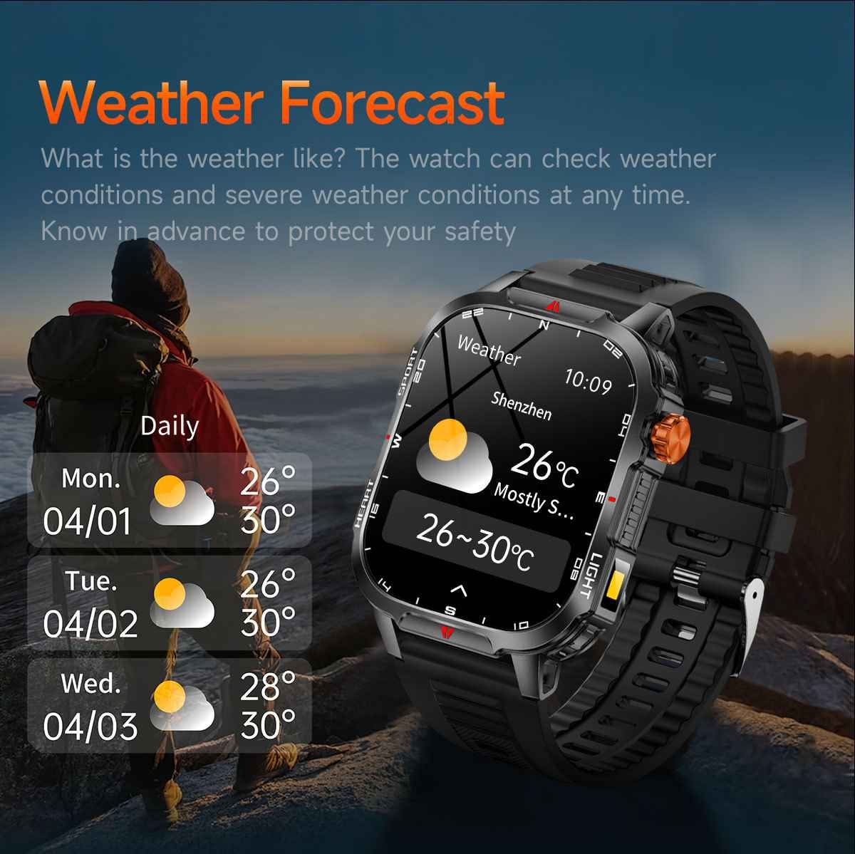 • Rugged IP68 Waterproof Build: Crafted with a Zinc Alloy frame and durable ABS+PC materials, this watch is rated IP68 dust and water-resistant. It withstands sweat, rain, and handwashing, making it suitable for tough environments.