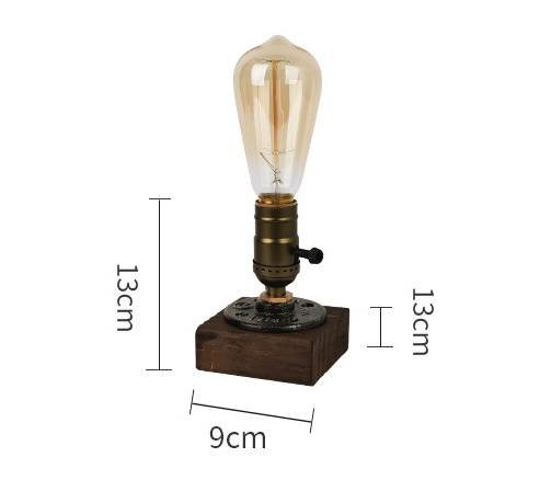 Rustic Industrial Table Lamp Vintage Wooden Base Accent Light