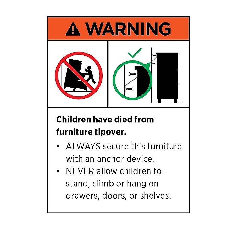 • NEVER allow children to stand, climb, or hang on drawers, doors, or shelves.