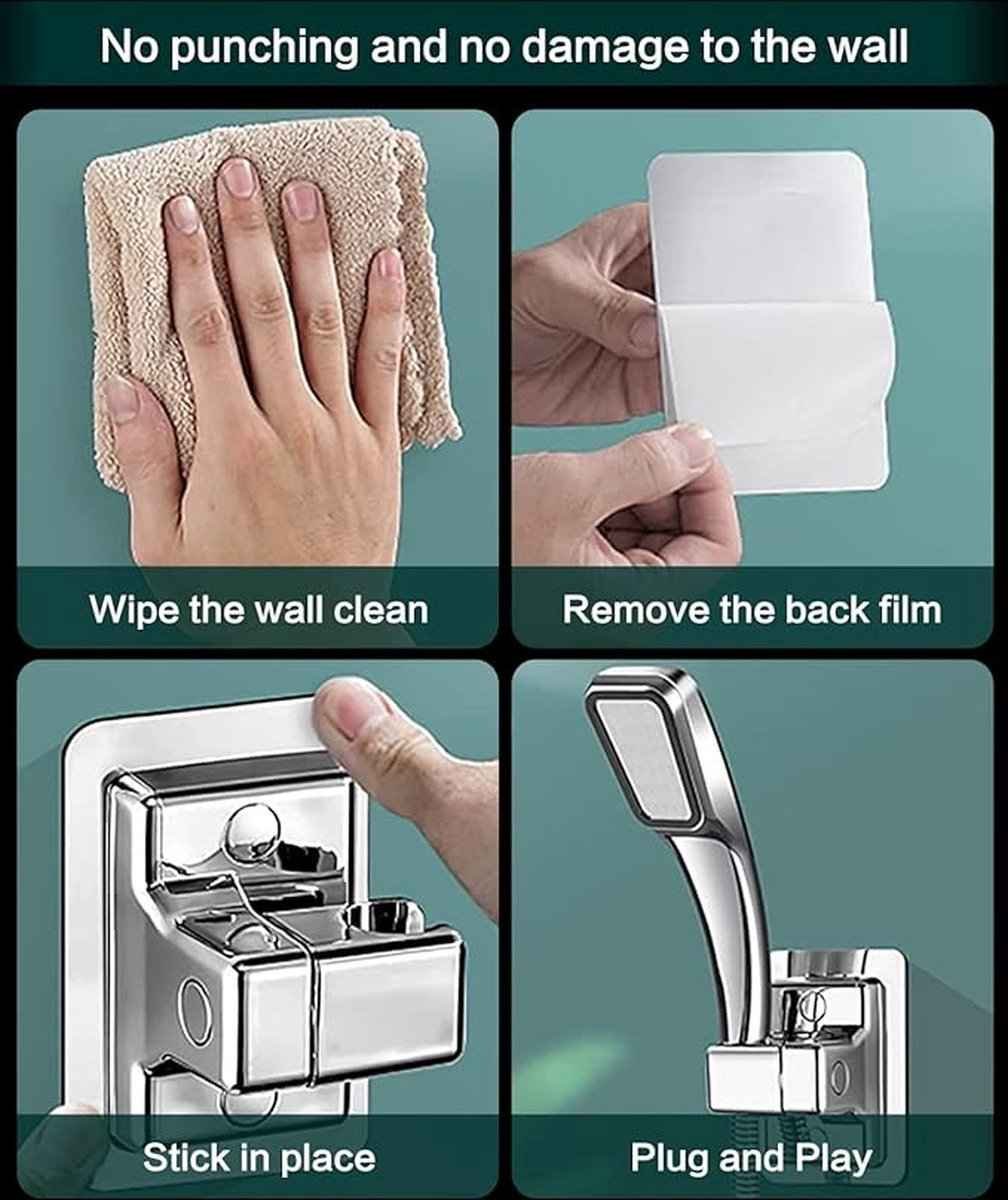 Premium shower head holder with strong adhesive, easy installation and universal compatibility for a hassle-free shower experience.