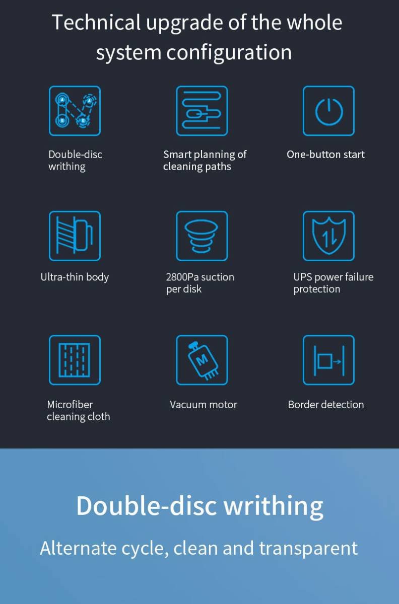 - UPS Power Failure Protection: Safety is a priority. The built-in 500mAh backup battery (Uninterruptible Power System) ensures the robot stays attached to the window for up to 20 minutes in the event of a sudden power outage, sounding an alarm to alert you.