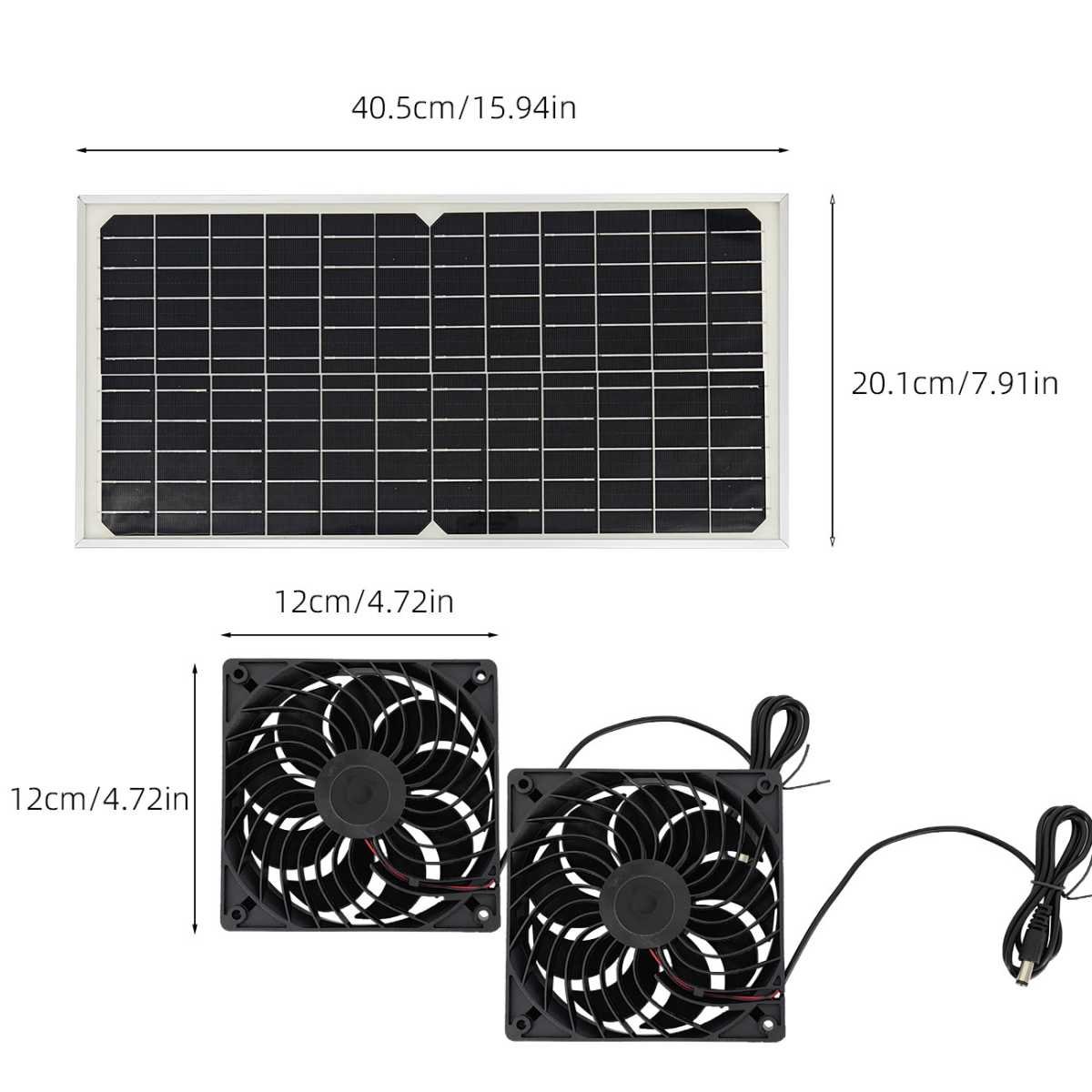 - 1 × Y-Splitter Power Cable (connects one solar panel to two fans)