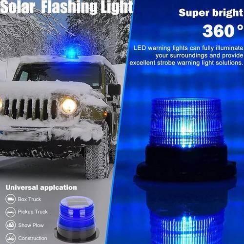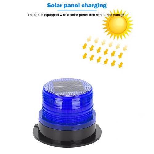 Solar Powered LED Flashing Beacon Light, 12-24V Amber Emergency Magnetic Warning Blue