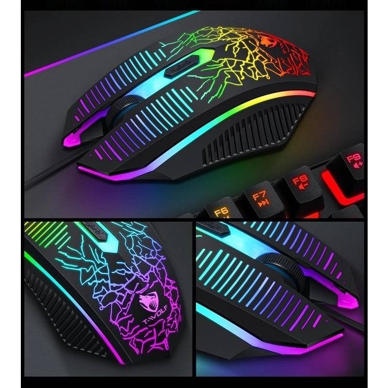 T-Wolf TF400 4-pcs Rainbow Keyboard/Mouse/Headphone/Mouse Pad Kit Set