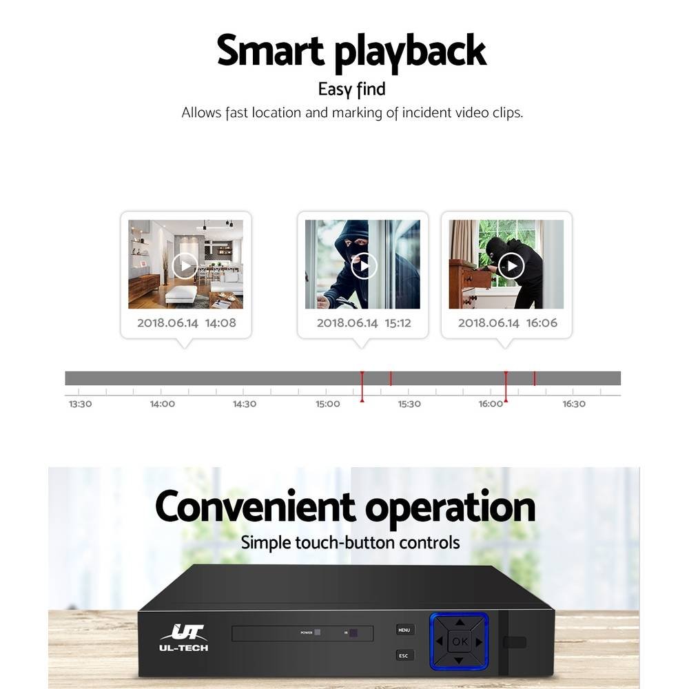 Searching for a smart DVR to complement to your CCTV system? Look no further than the UT UL-Tech 8-channel DVR. An innovative 5-in-1 1080N DVR that is packed with the latest technological features to make close circuit surveillance effective and efficient.
