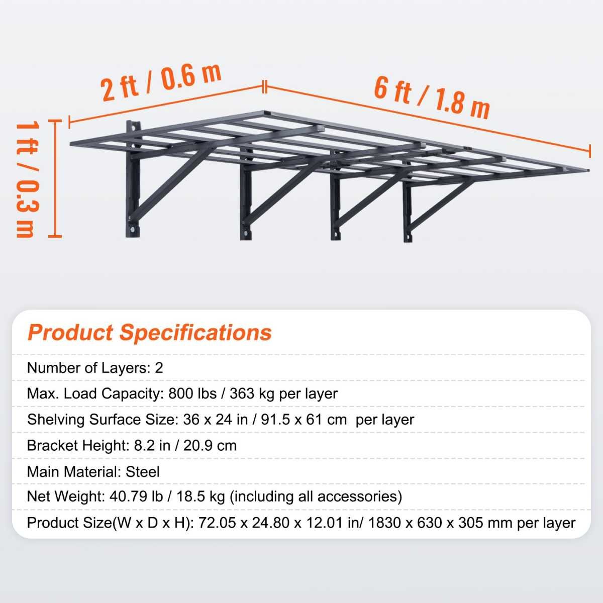 VEVOR 2PCS 72x24in Garage Storage Shelving Wall Mounted Heavy Duty Shelves Rack