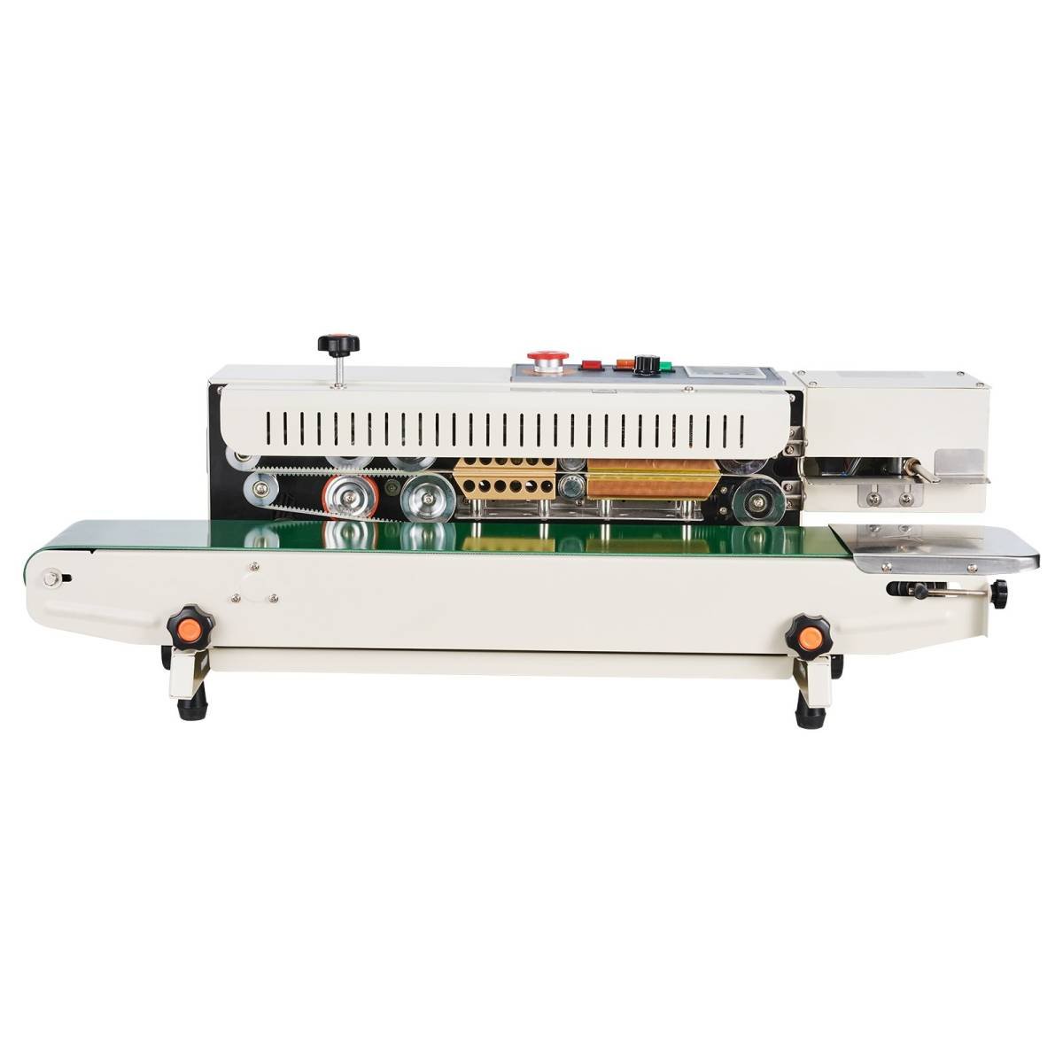 Use our band sealer to customize your products with embossing and alphanumeric printing. Achieve speeds up to 0-52.49 ft/min (0-16 m/min) to meet diverse production demands. Easy operation and included accessories ensure smooth sealing processes. It also provides a nitrogen inflation function (air tank not included).