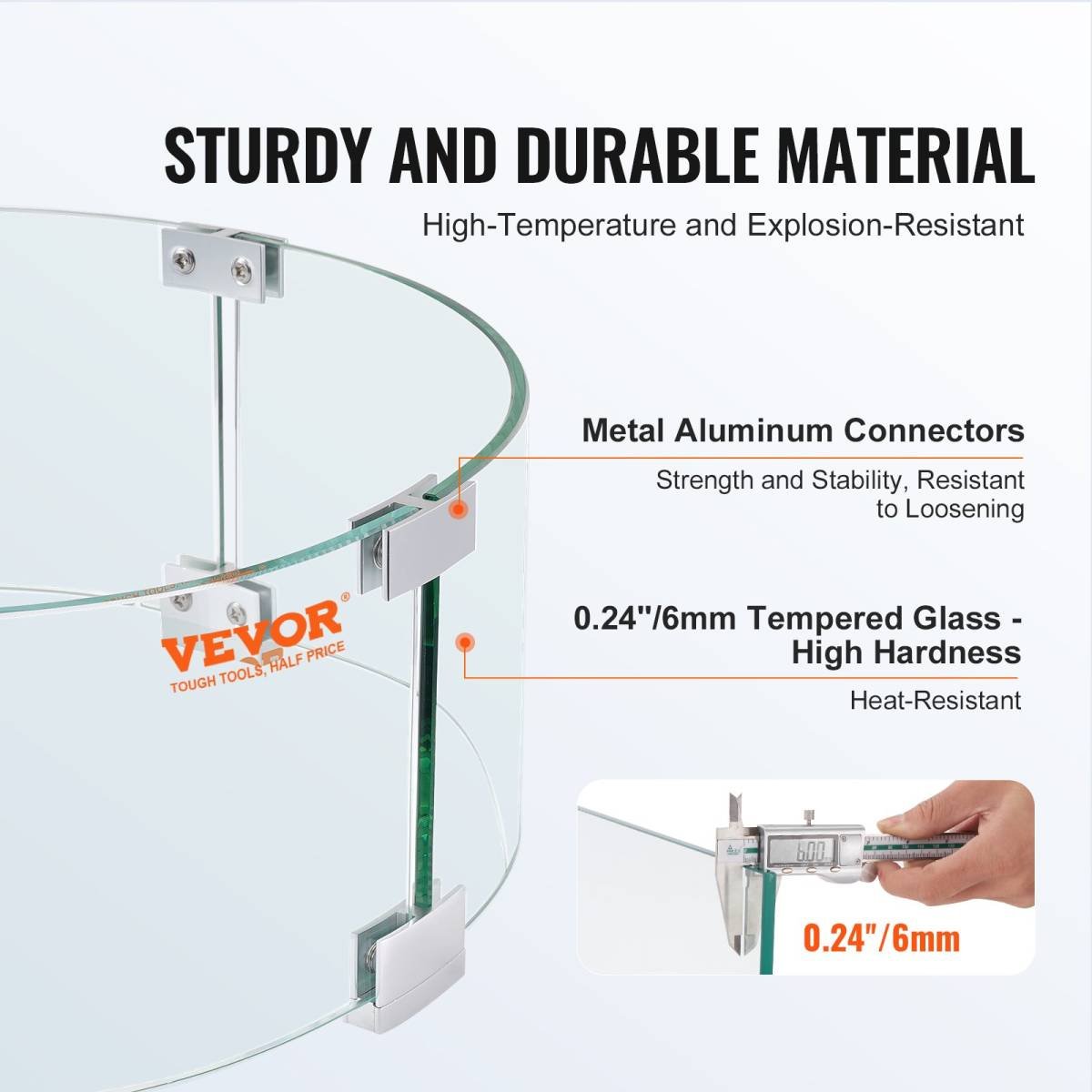 Our fire pit windscreen is made of strong, heavy-duty tempered glass with polished edges-so it lasts as long as your fire pit does. Wind boards are 0.24 inch in thickness, providing assuring stability and security. Aluminum brackets offer firm connection and steady support. In contrast to ordinary glass, our premium material extends the service life.