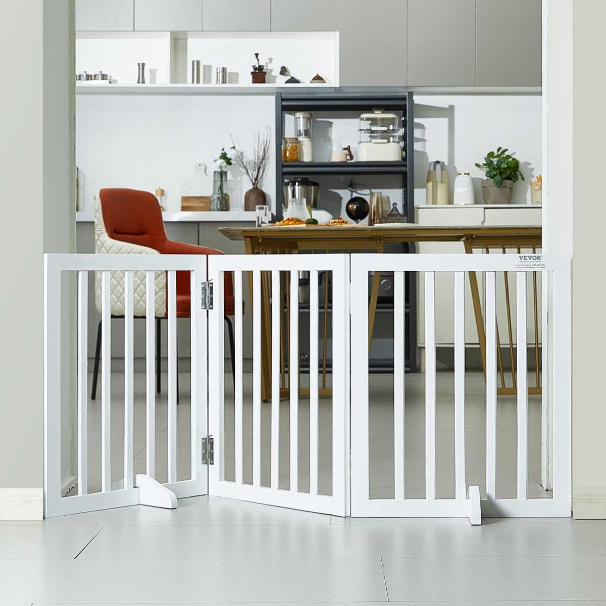 VEVOR Free Standing Dog Gate, 24″ H x 60″ W Freestanding Pet Gate, 3 Panels Foldable Dog Gate for Wide and Narrow Passageways, Expandable Dog Barrier with Silent Foot Support for Indoor, White