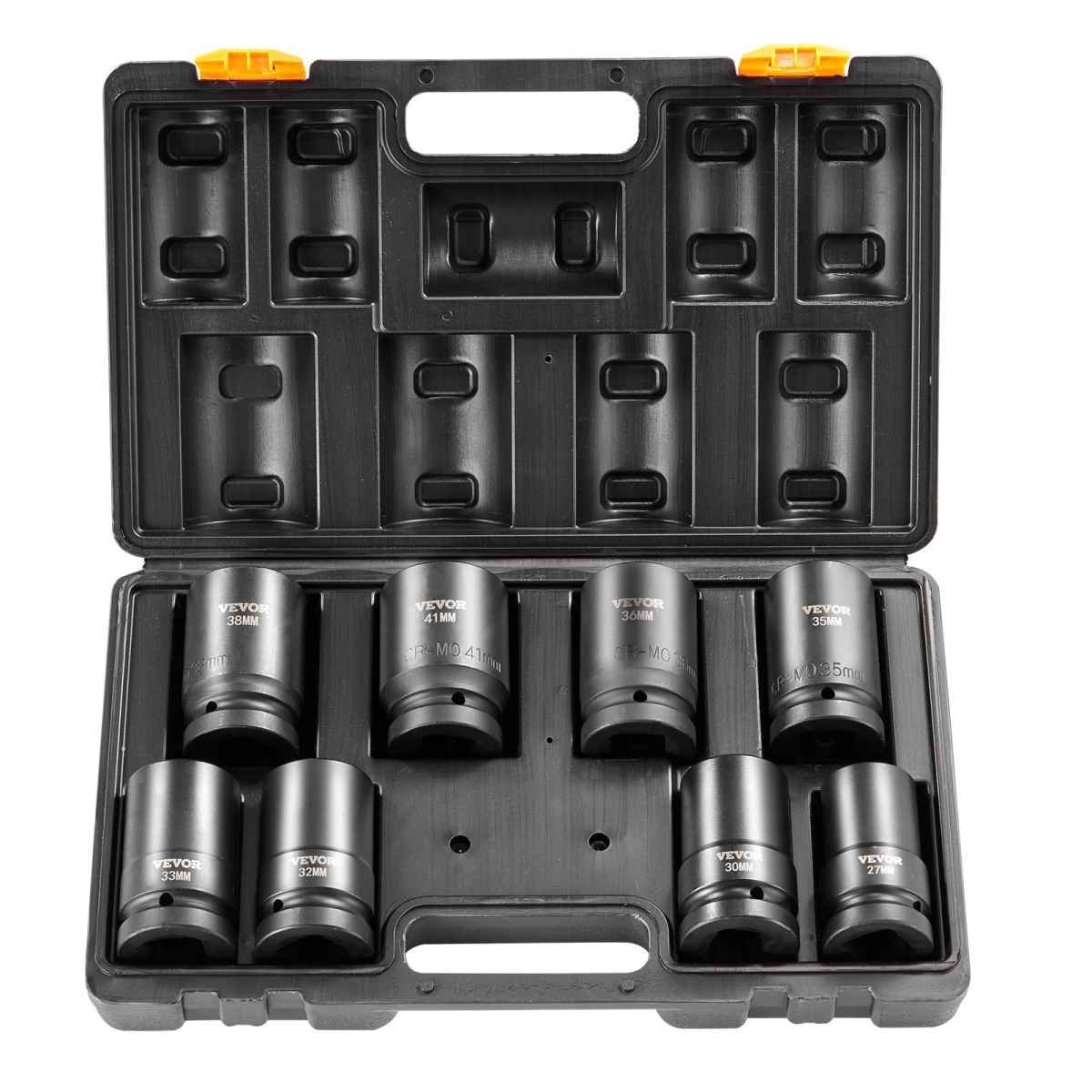 This comprehensive set includes 8 metric deep impact sockets: 27mm, 30mm, 32mm, 33mm, 35mm, 36mm, 38mm, 41mm, offering a versatile selection for various mechanical tasks.