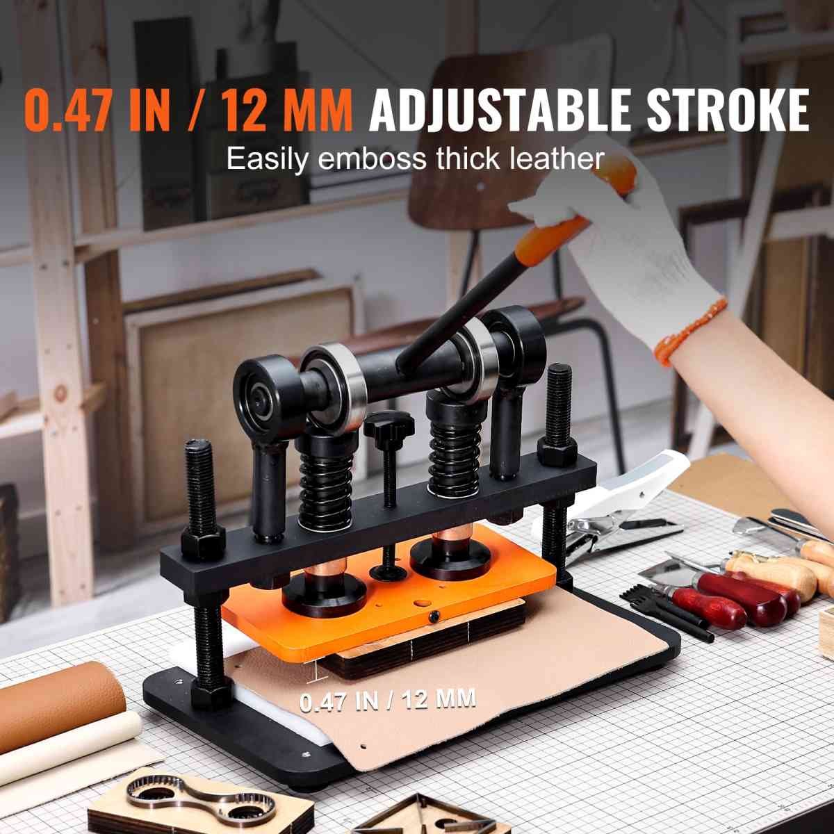VEVOR Leather Cutting Machine, 10.2 x 4.7 in Embossing Plate Manual Die Cutter, 0.47 in Pressure Stroke Leather Embossing Machine, Dual Guide Shafts Die Cut Machine for Various of Materials