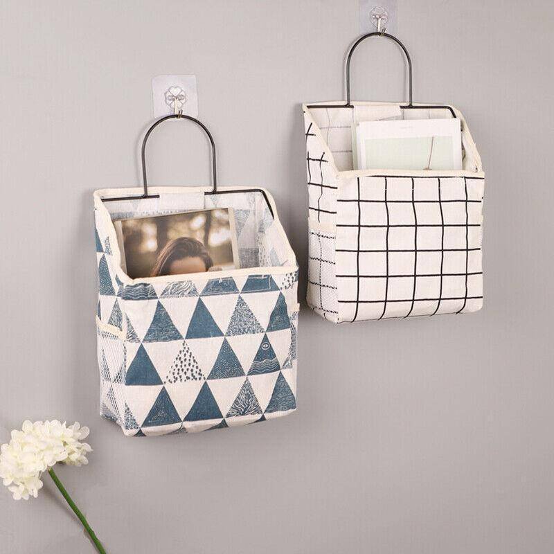 Wall Hanging Storage Bag Home Wardrobe Organiser Pouch Book Holder Phone Pocket – White Grid