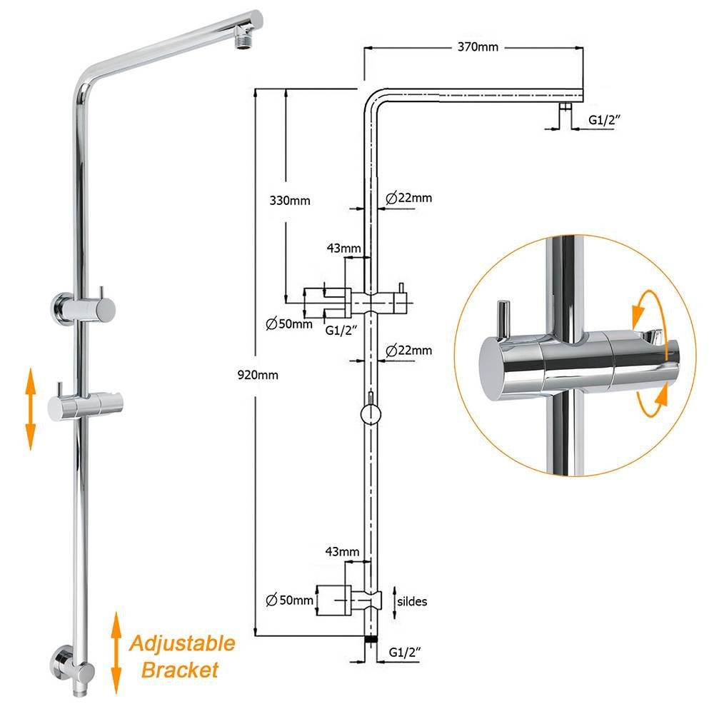 - Materials: Brass in rail, plastic in shower holder, brass in diverter