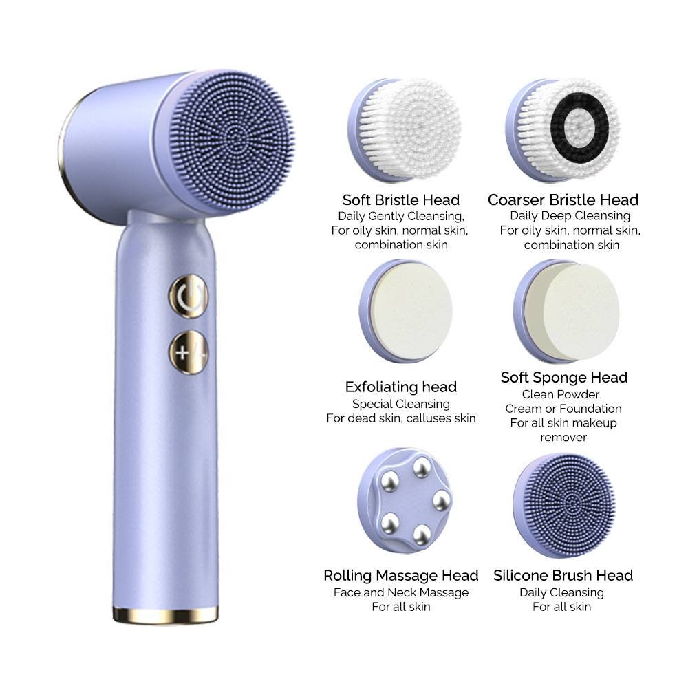 Elevate your skincare routine with this versatile 6-in-1 Electric Facial Cleansing Brush. Designed for comprehensive facial care, this rechargeable device offers deep cleansing, gentle exfoliation, makeup removal, and relaxing massage, providing a spa-like experience right at home.