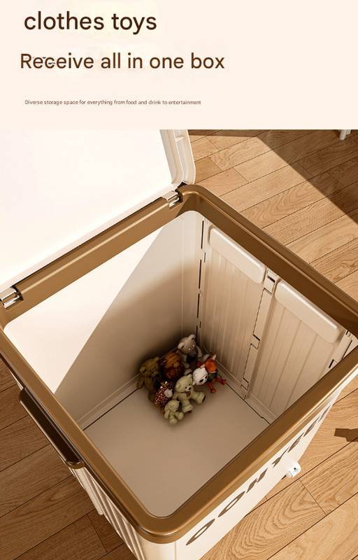 - Effortless Mobility: Equipped with four 360-degree smooth-gliding caster wheels, moving the box from room to room is a breeze, even when it’s full. Two of the wheels are lockable, ensuring the bin stays securely in place when needed.