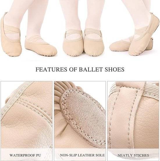 Women’s Ballet Shoes – Ballet Shoes for Girls – Beige – Soft PU Leather Dance Shoes with Non-Slip Sole – Suitable for Ballet, Yoga & Home Use – For 7 UK Child