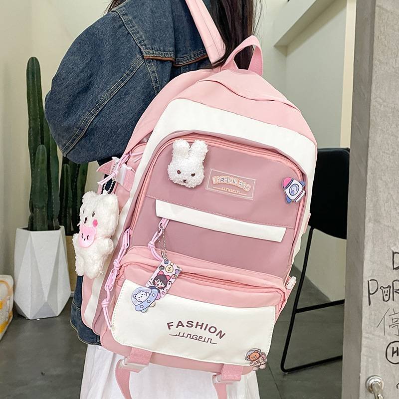 Upgrade your back-to-school look with this trendy and spacious aesthetic backpack in classic Pink. Designed with the popular “Ins” and Harajuku street style in mind, this bag blends functionality with a youthful, fresh vibe. Whether you are heading to high school, university lectures, or a weekend day trip, this durable rucksack keeps your essentials organised while allowing you to express your unique personality through its customisable accessories.